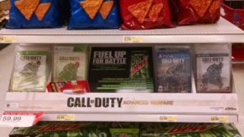 This week, Target brings back its annual pre-holiday sale on video games — buy two, get one free. A few guys in line ahead of me were getting Call of Duty: Advanced Warfare as part of their haul, no doubt reminded by this helpful display.