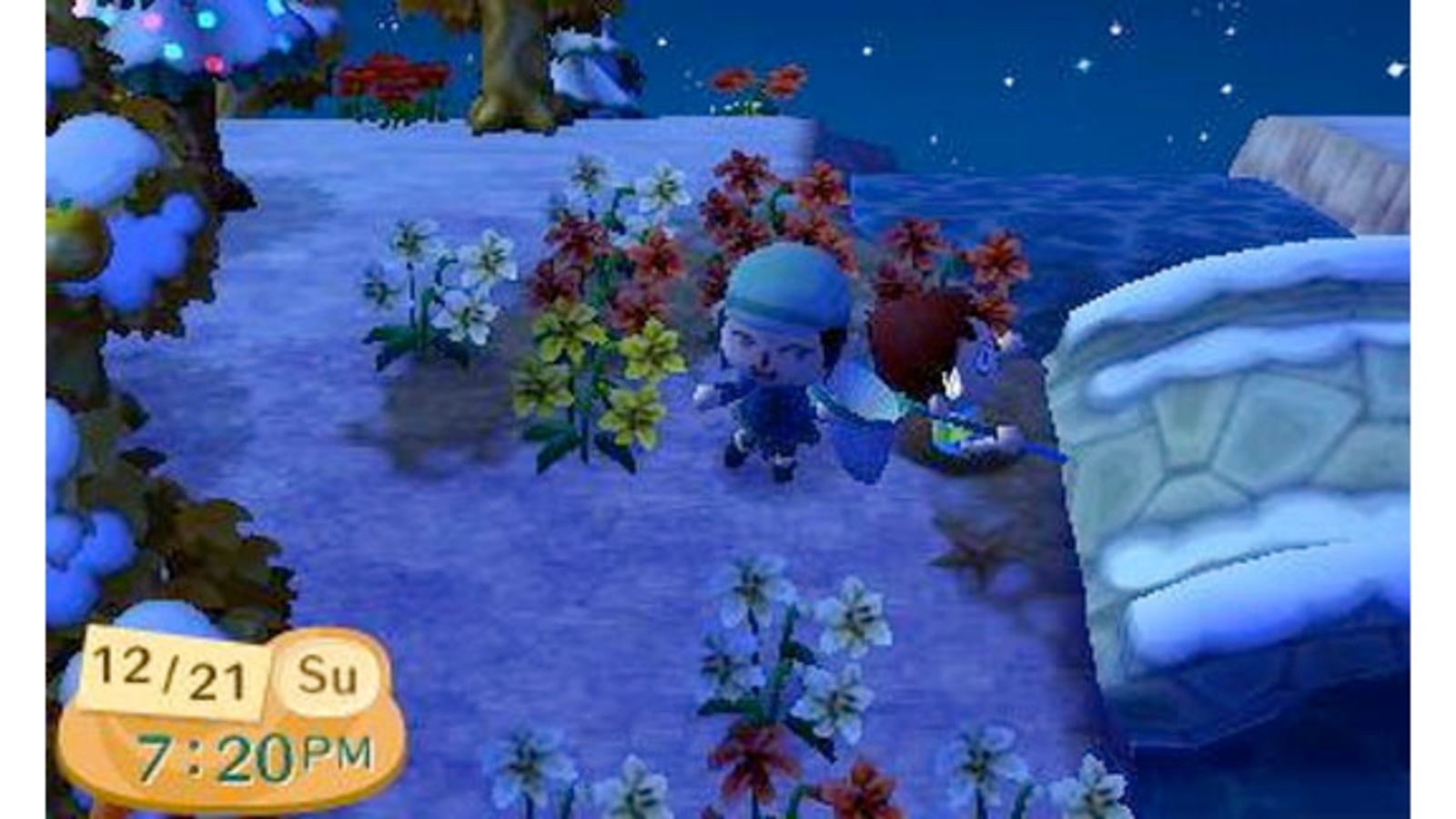 Last Sunday it was Winter's Solstice Day in Animal Crossing, as the patoot I am (according to Neryl) I forgot about it, heck I even forgot about Toy Day. She invited me over to her town because her Re-Tail store was paying extra deniros for any kind of furniture, and honestly I was running out of space in my inventory. But there was an extra surprise waiting for me at Ocelum...
